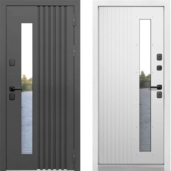 Дверь уличная с терморазрывом Гранд, со стеклопакетом, муар серый/белая шагрень