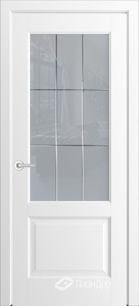 Кантри-К, дверь неоклассика со стеклом Решетка-2, эмаль белая