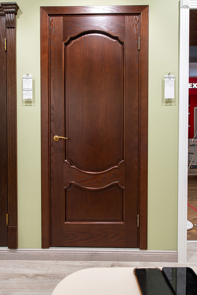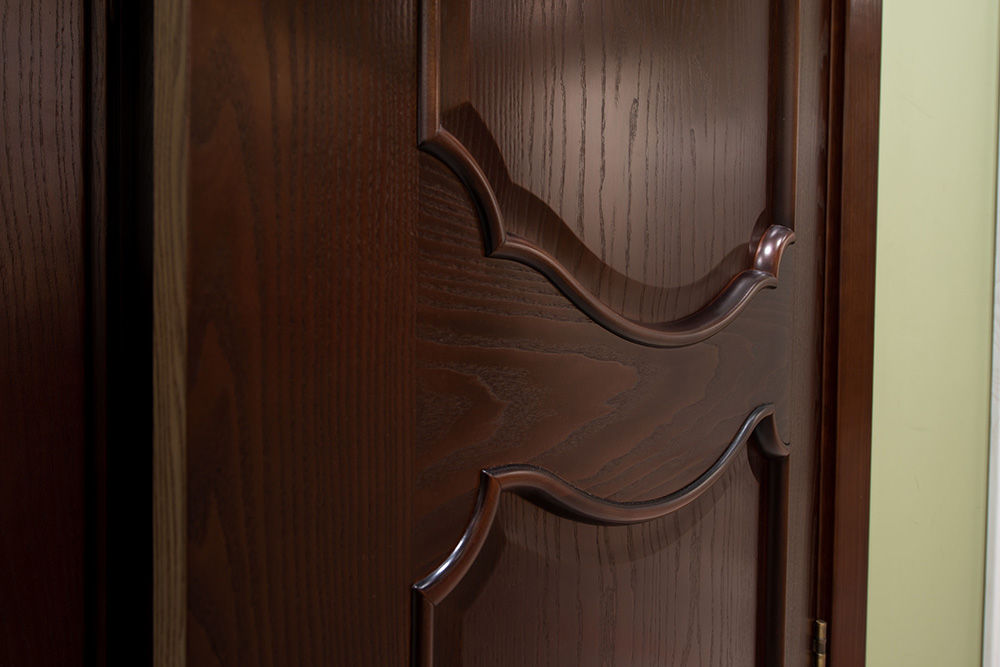 Каркас выполнен из массива хвойных пород, филенки - из МДФ, покрытие - натуральный шпон.
