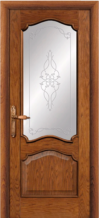 Каркас выполнен из массива хвойных пород, филенки - из МДФ, покрытие - натуральный шпон.