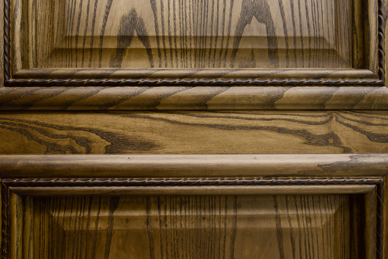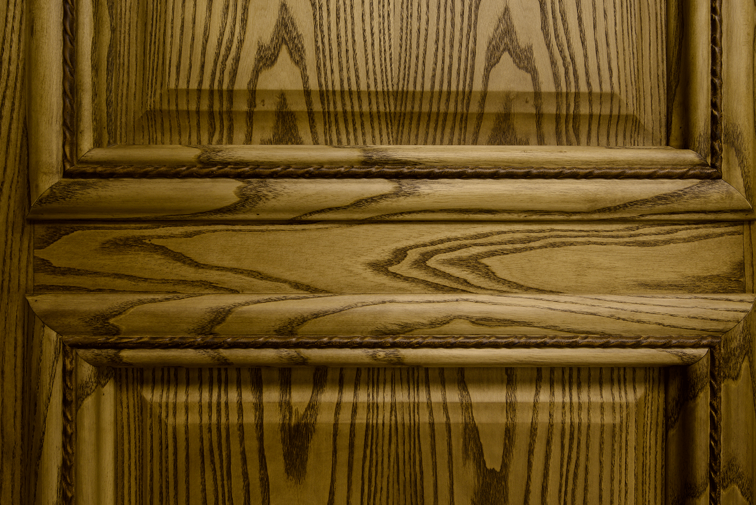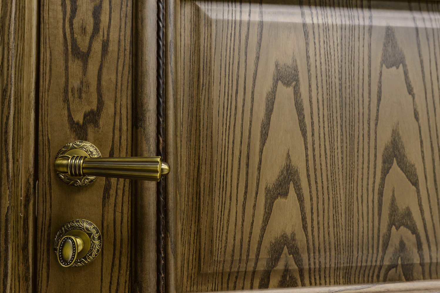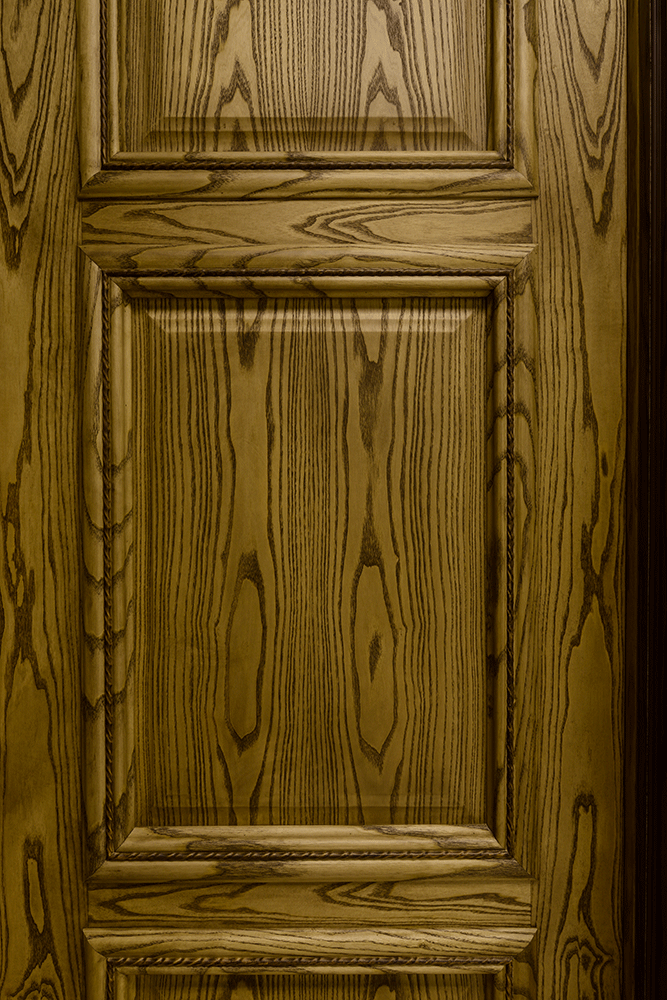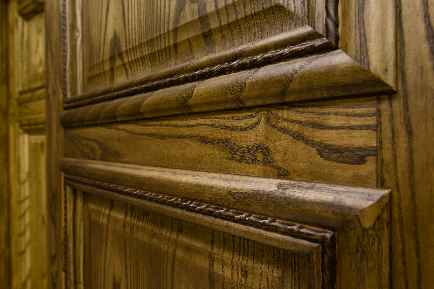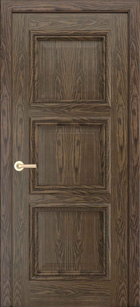 Каркас двери изготовлен из массива сосны, филенки - МДФ, покрытие - натуральный шпон. Наличник - фрезерованный, телескопический, ширина - 80 мм.