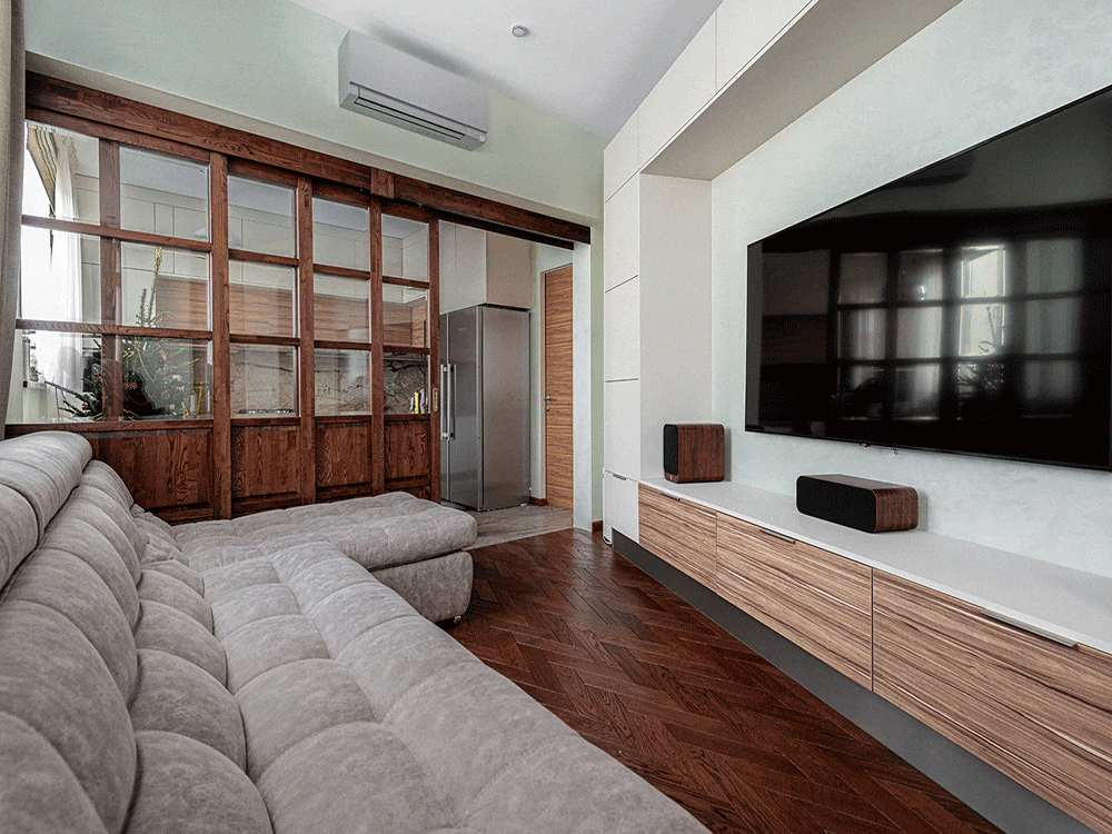 Межкомнатные перегородки позволяют решить сразу несколько задач. С их помощью можно визуально расширить помещение, сделать его более просторным и светлым. Раздвижные системы позволяют закрыть широкие нестандартные проемы, а также поделить одну комнату на две-три функциональные зоны.
