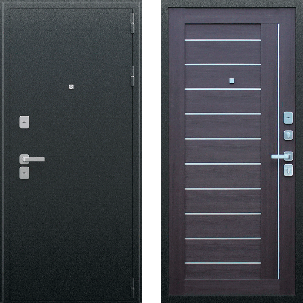 Дверь входная СБ-17, антик серебро/орех рифленый