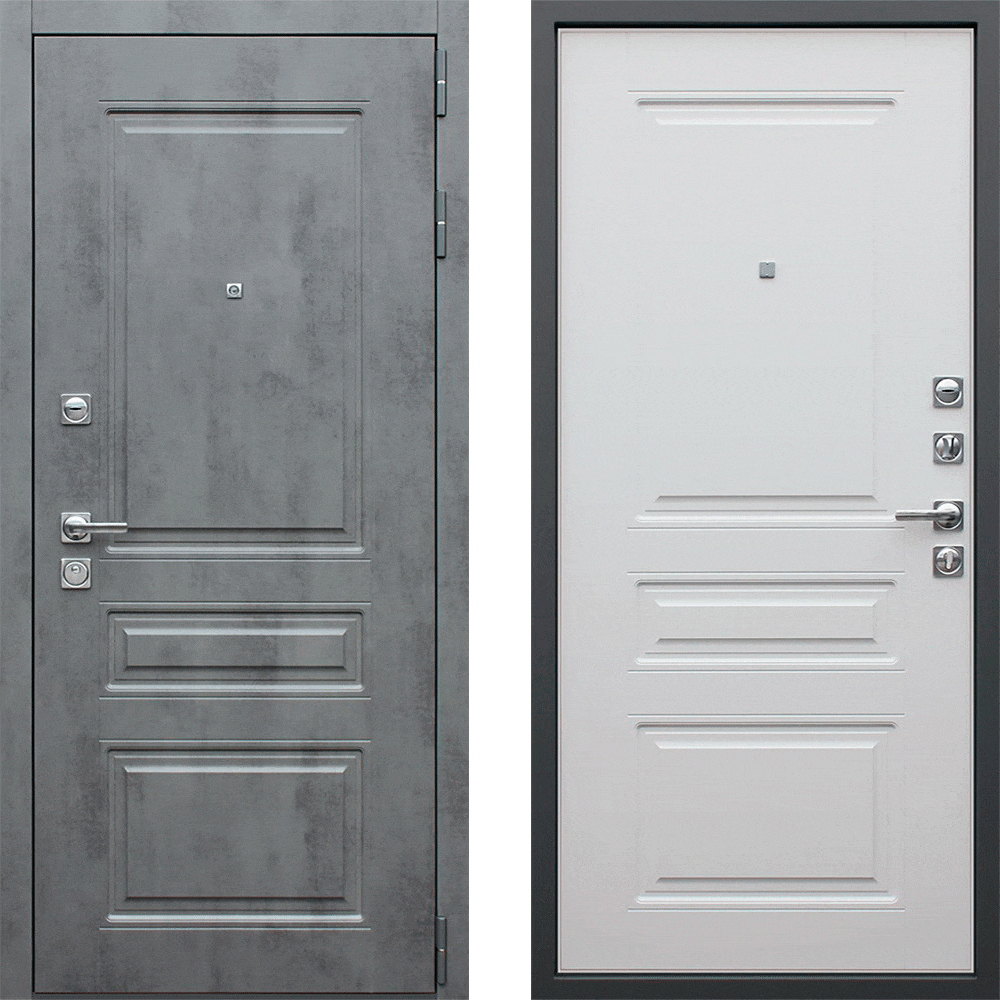 Дверь входная Соло бетон, бетон темный/белый матовый