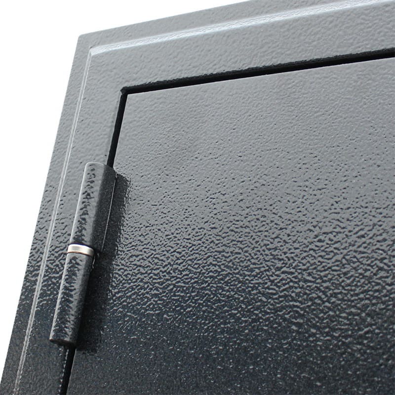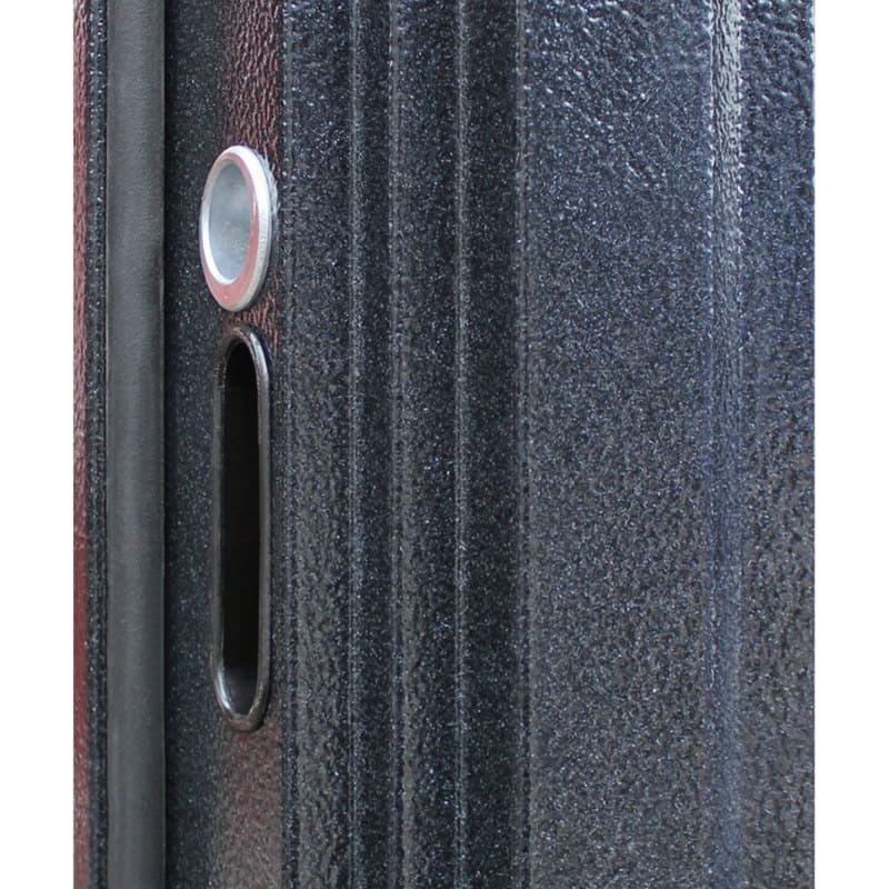 Металл, утолщенный гнутый профиль с фигурным наличником. Порошково-полимерное покрытие, цвет: букле графитОтделка внутри
