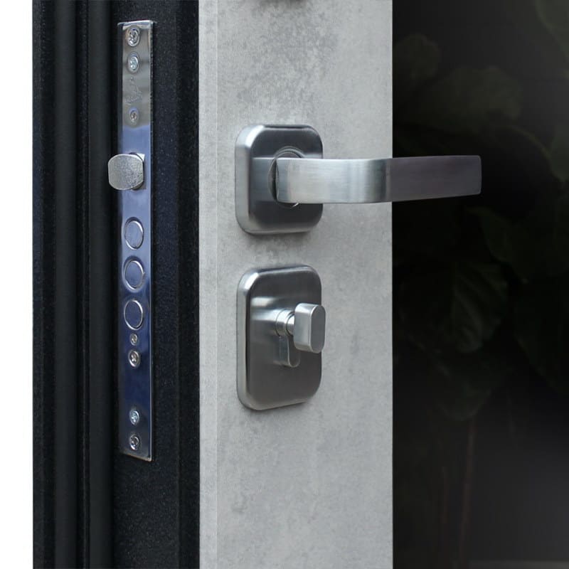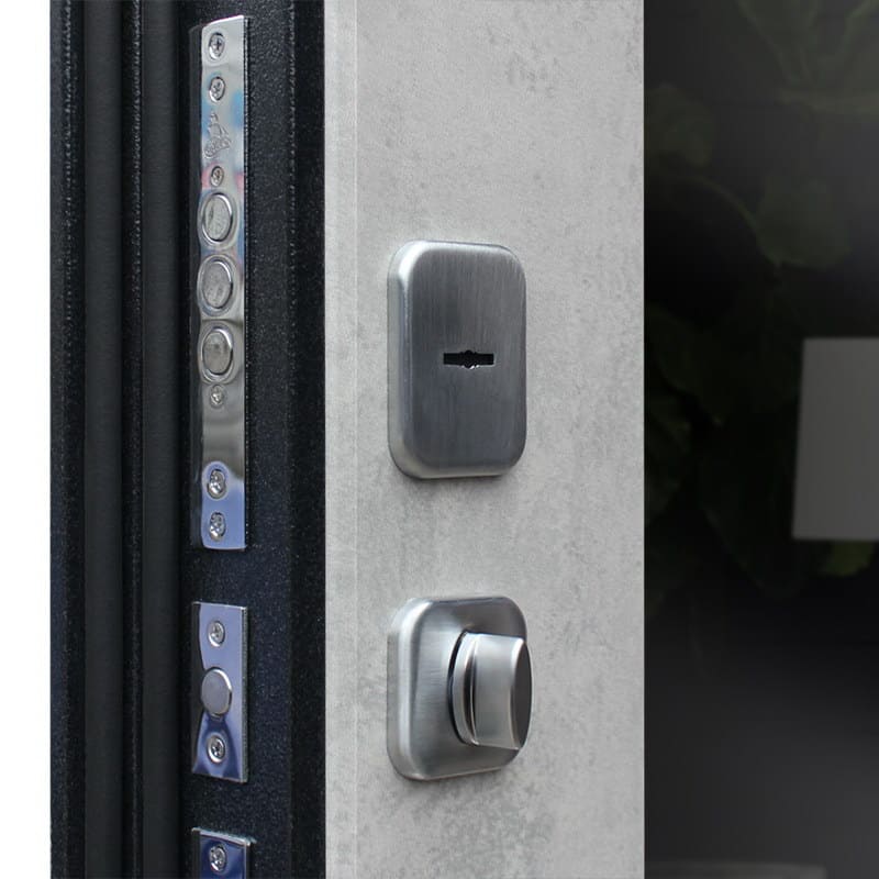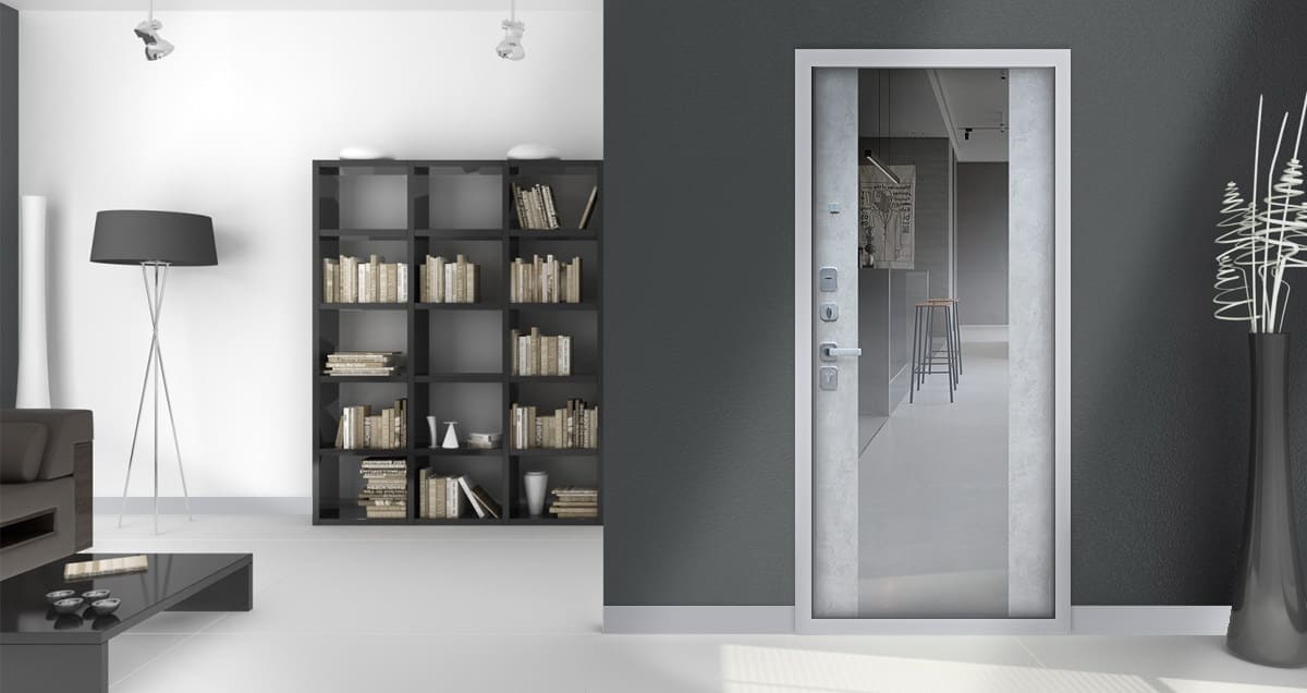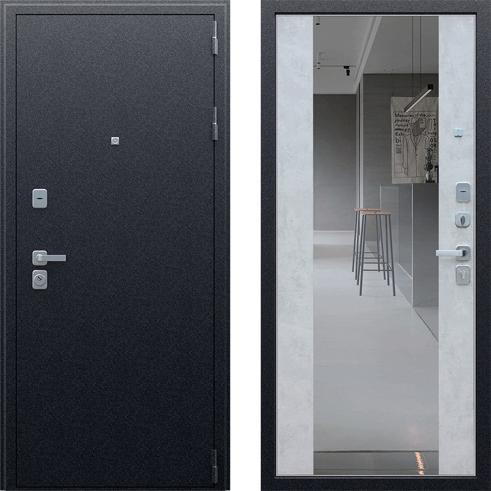 Дверь входная Техно Бетон с зеркалом, букле графит/бетон светлый