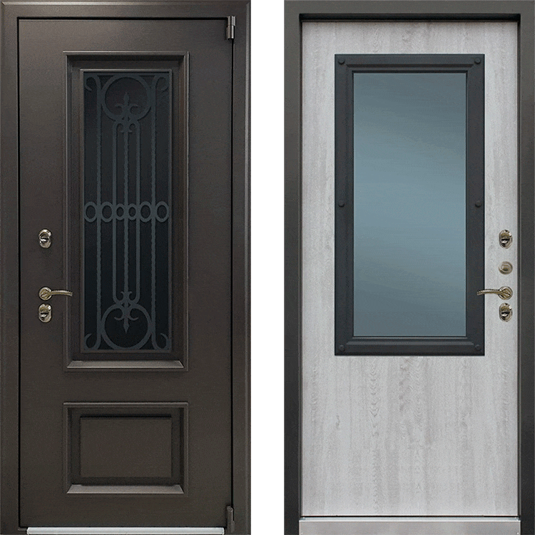 Дверь уличная с терморазрывом и стеклом Айсберг, муар коричневый/сосна белая