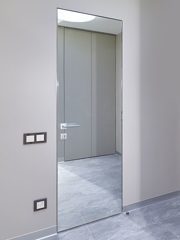 Дверь устанавливается в алюминиевый короб, который монтируется внутри дверного проема, вровень с плоскостью стены. При этом короб не оформляется наличниками, что позволяет создать эффект невидимой двери.