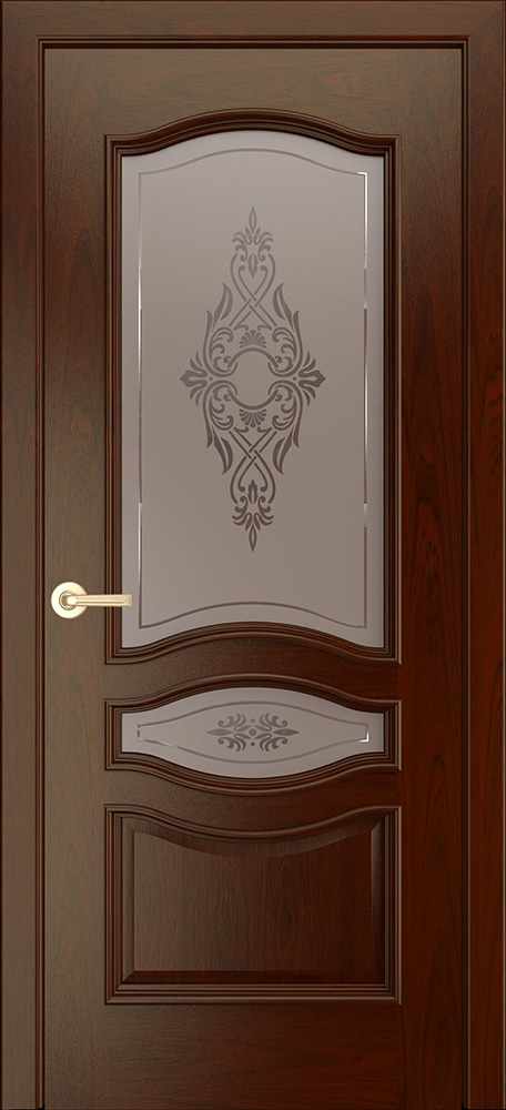 Каркас двери изготовлен из массива сосны, филенки - МДФ, покрытие - натуральный шпон. Наличник - прямой, телескопический, ширина - 70 мм.