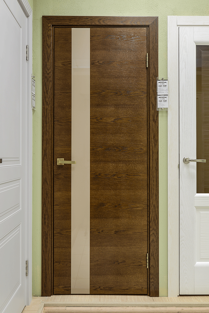 Каркас выполнен из массива хвойных пород, филенки - из МДФ, покрытие - натуральный шпон. Стекло - лакобель.